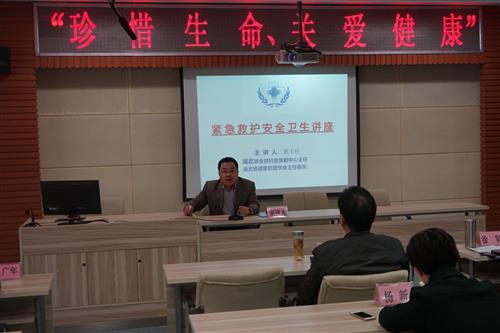 为加强健康教育意识,提高急救、互救的能力,11月10日下午,我院邀请“湖北省全民科教中心”郭瑞峰老师为我院干部职工举办了一场“应急救护与防病知识普及”讲座。???
