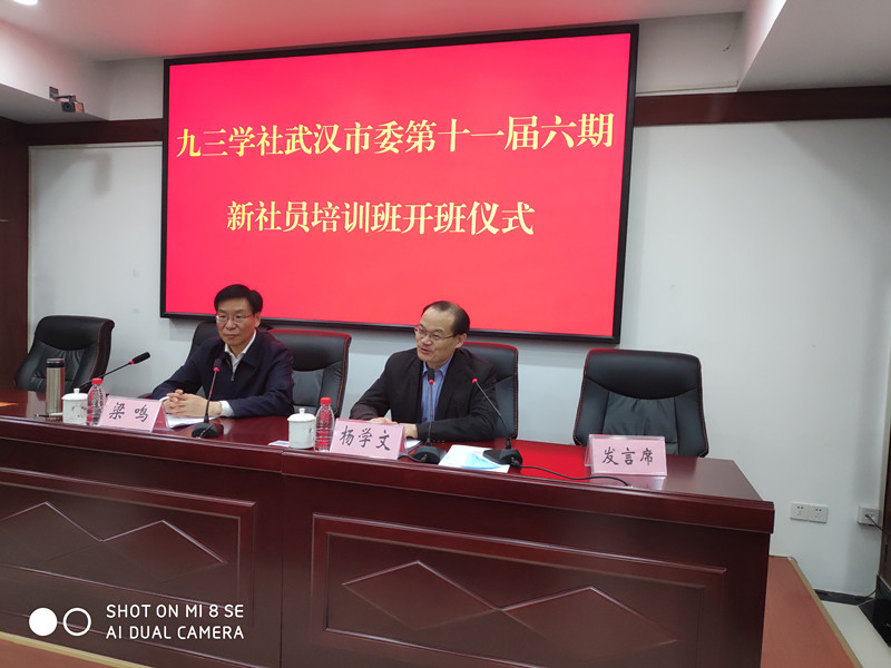 开班式上,刚参加全国两会归来的梁鸣副主席,既作为市社院的院长,又代表九三学社武汉市委向参加学习的全体学员表示热烈欢迎,并向新社员提出:要弄清楚九三学社的组织特性,努力做中国特色社会主义的亲历者、实践者、维护者、捍卫者,做新时代的见证者、开创者、建设者、奋斗者;要弄清楚九三学社的履职范围,清楚民主党派的基本职能是参政议政、民主监督、参加中国共产党领导的政治协商;要明确参训的目的和目标,做到“勤学”、“善思”、“力行”。
