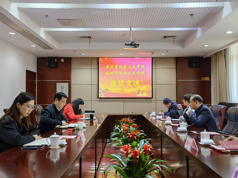 院党组副书记、副院长杨学文要求各部门与浙江社院、杭州社院建立常态化研讨学习交流机制,全面借鉴先进经验,认真完善我院“十四五”规划和今年工作举措,结合实际积极创新,打造武汉社院工作亮点和品牌。