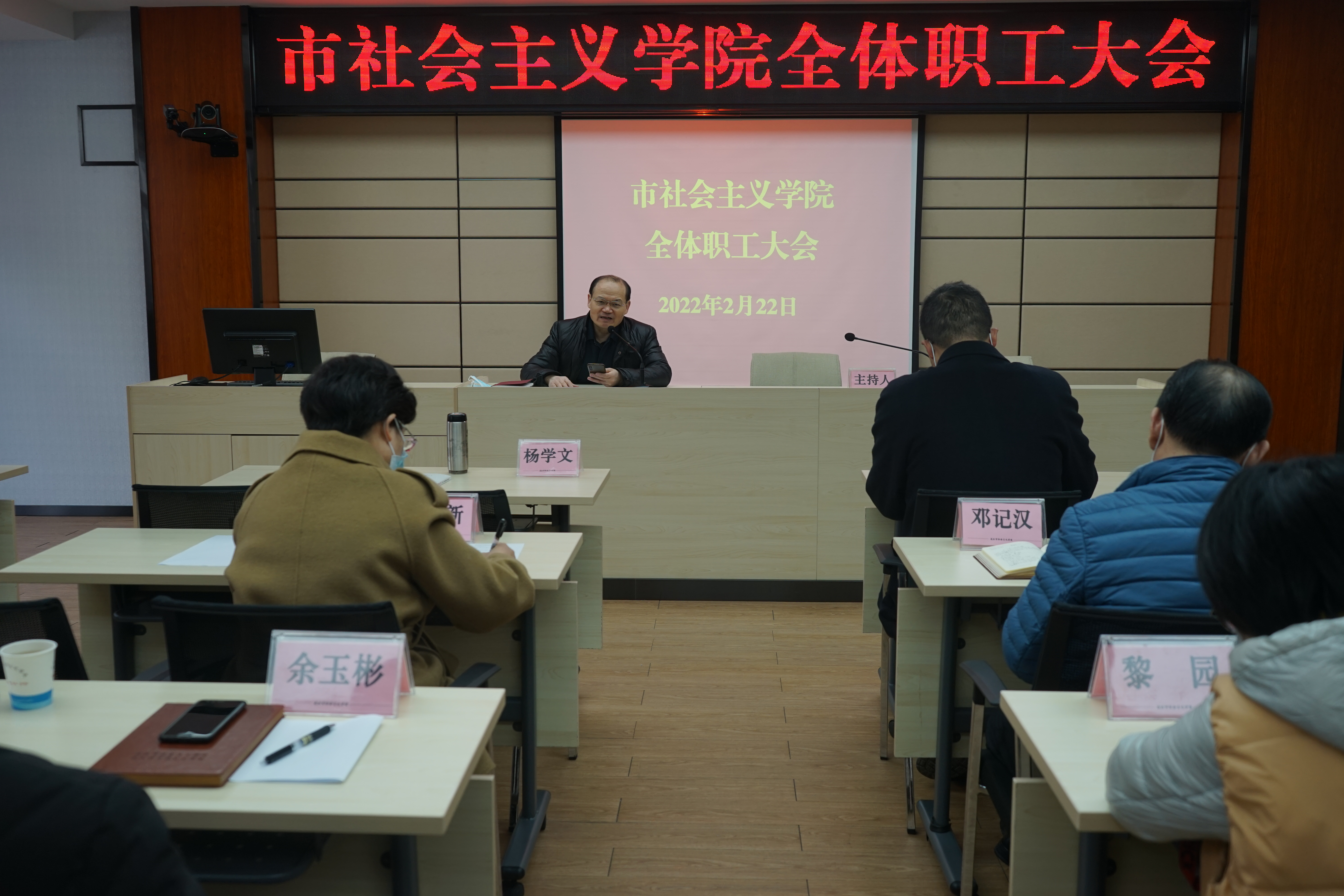 2月22日上午,市社会主义学院召开全院干部职工大会,传达学习习近平总书记在十九届中央纪委六次全会上的重要讲话、全省深入推进区域发展布局暨县域经济发展大会、市委全面依法治市工作会议、全市疫情防控会议、第十四届市委常委会第8次会议、市委统战部部务会及我院第六次党组扩大会议等会议精神,部署推进落实新学期工作,党组成员、副院长徐辉主持会议。
