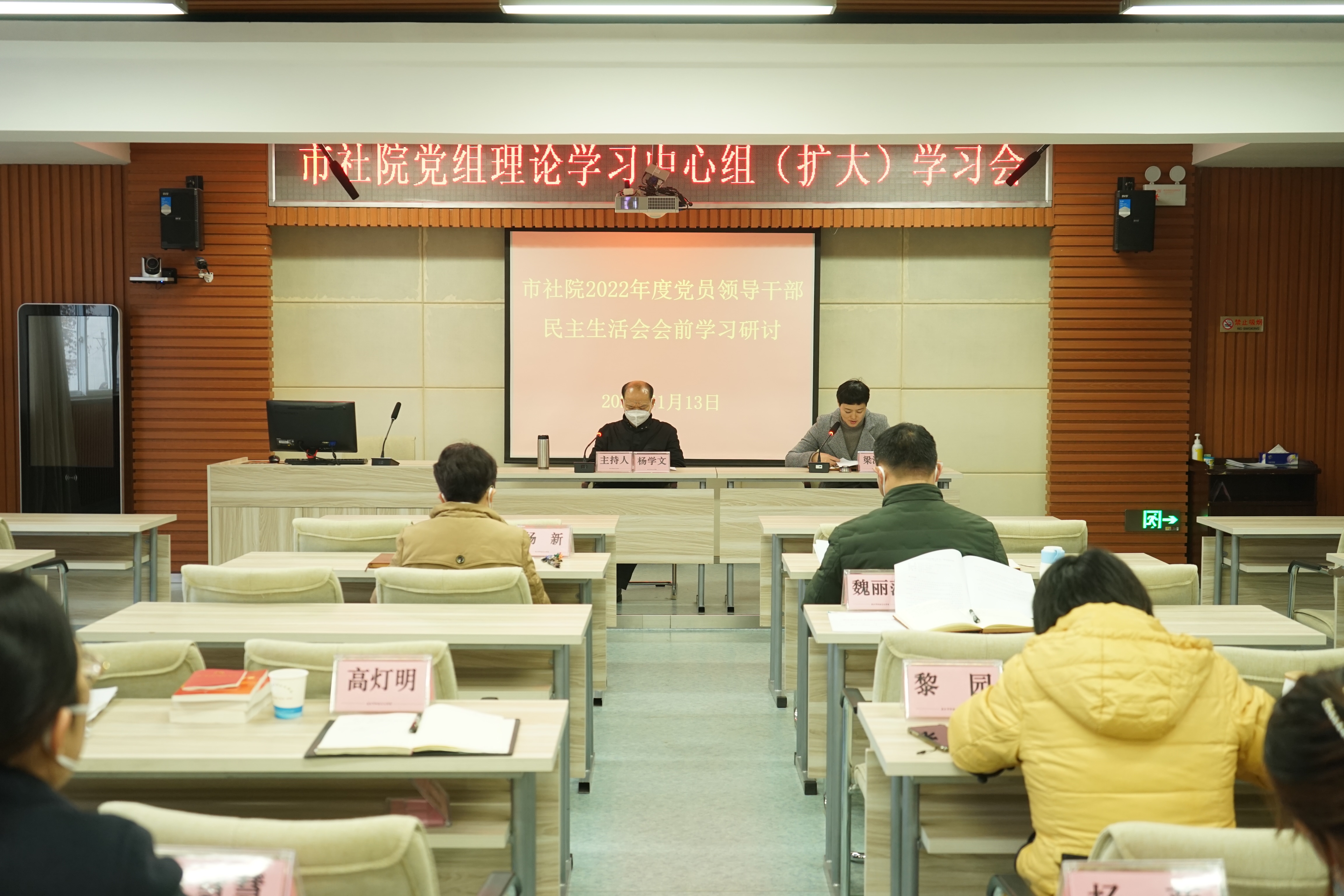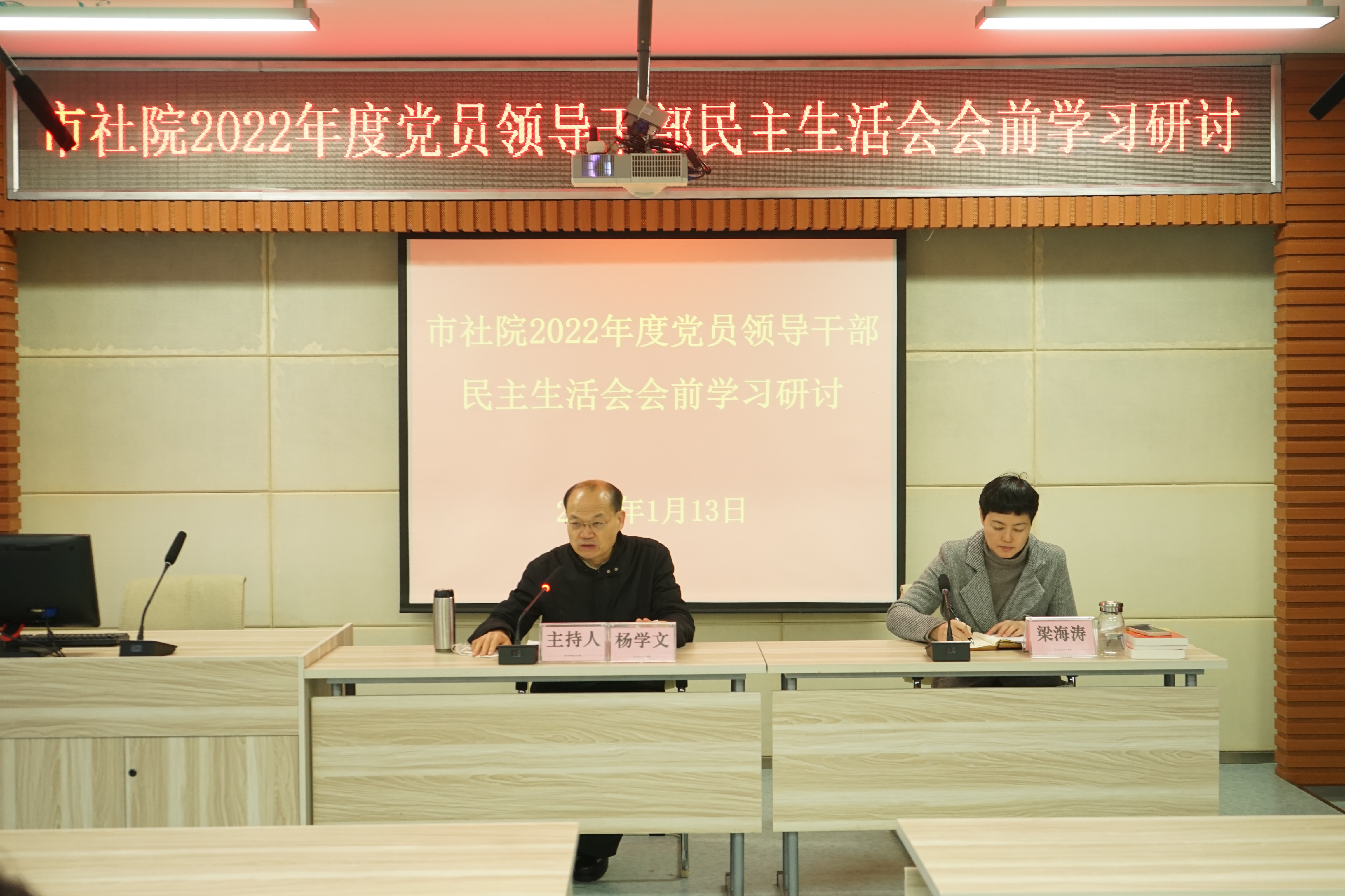 杨学文讲话表示,市社会主义学院是中国共产党领导的统一战线性质的政治学院,市社院要在学习贯彻党的二十大精神上走在前列,在学懂弄通吃透上当好示范,要认真落实好民主生活会会前学习的各项要求,切实把思想和行动统一到党中央精神上来,打牢开好民主生活会的思想基础,以奋发有为的精神状态,推动党的二十大作出的重大决策部署在全院落地见效。关于下阶段工作提出四点要求:一是要对照上级要求,抓紧做好民主生活会前各项准备工作;二是市社院要紧紧围绕“中国特色社会主义”和“全面建设社会主义现代化国家”这两个重大难点问题,把它研究透彻,切实给学员讲清楚;三是认真学习贯彻落实好市委十四届四次全会暨经济工作会议精神的各项要求;四是改进工作作风,落实好春节期间值班、安全保密、困难慰问、廉洁守纪等方面工作要求,提前谋划好新年度教学工作,确保第一季度“开门红”。
