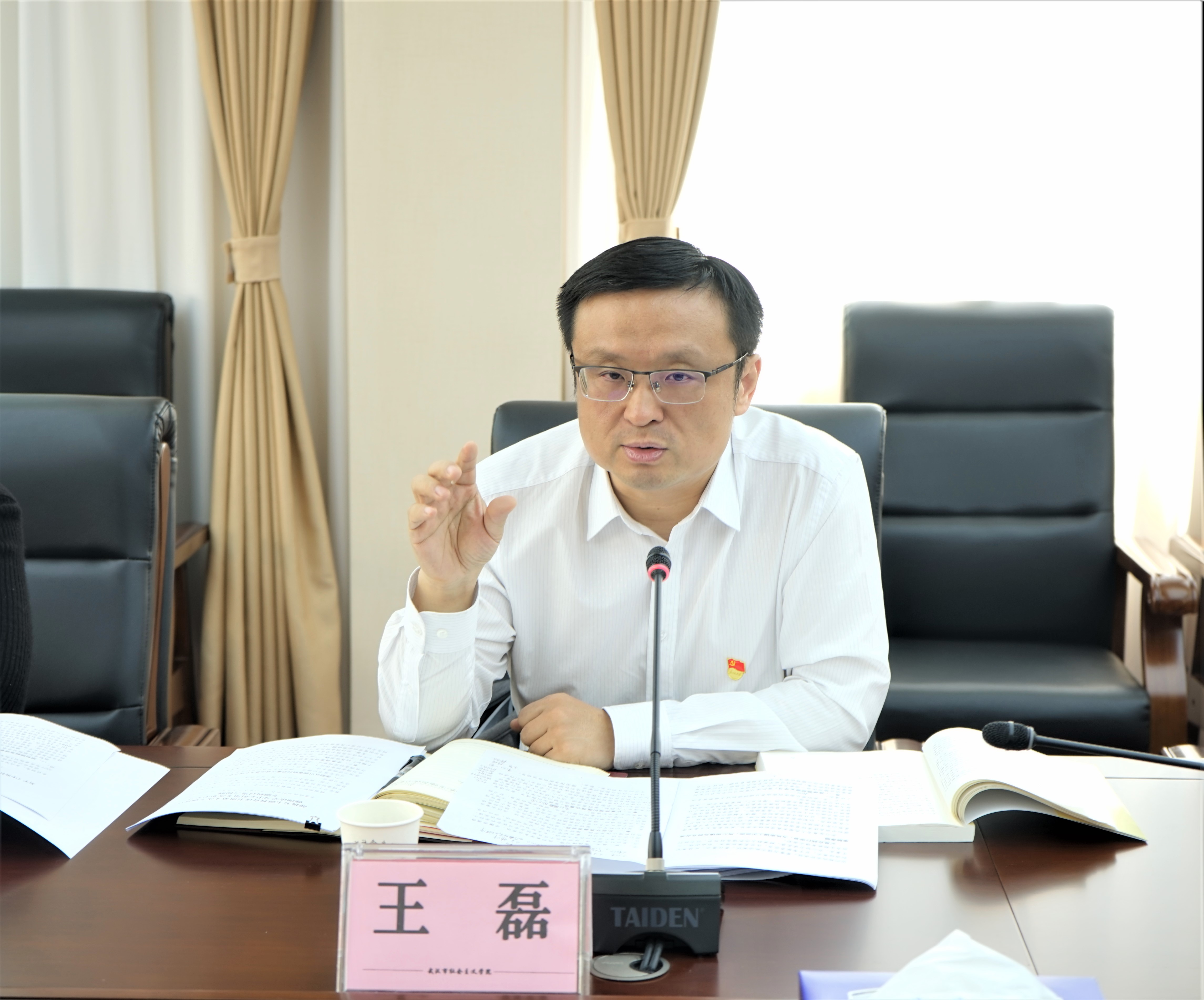 王磊讲话要求,一是要在以学铸魂、以学增智上见成效,加强思想建设;二是要在以学正风、以学促干上见成效,推动统一战线教育培训事业高质量发展;三是要在践行宗旨为民造福上见成效,用心用情为群众办实事解难题。学院党组要求,全院党员干部要深刻理解、牢牢把握主题教育“学思想、强党性、重实践、建新功”总要求,做到“真学”强信念、“深学”解难题、“勤学”接地气、“实学”见成效,努力在以学铸魂、以学增智、以学正风、以学促干方面取得实实在在的成效,不断提高履职能力。要通过系统深入学习习近平新时代中国特色社会主义思想,全面掌握其中的世界观方法论,运用好贯穿其中的立场观点方法,把马克思主义看家本领学到手,教育引导党员干部从思想上正本清源、固本培元。进一步推进习近平新时代中国特色社会主义思想“进教材、进课堂、进头脑”,教育和引导党外代表人士在真学真懂中坚定信念、在学思践悟中牢记合作初心,进一步夯实团结奋斗的理论根基。进一步发挥社会主义学院作为统一战线人才培养基地、理论研究基地、方针政策宣传基地作用,认真履行“统一战线性质的政治学院”“民主党派和无党派人士的联合党校”职责。