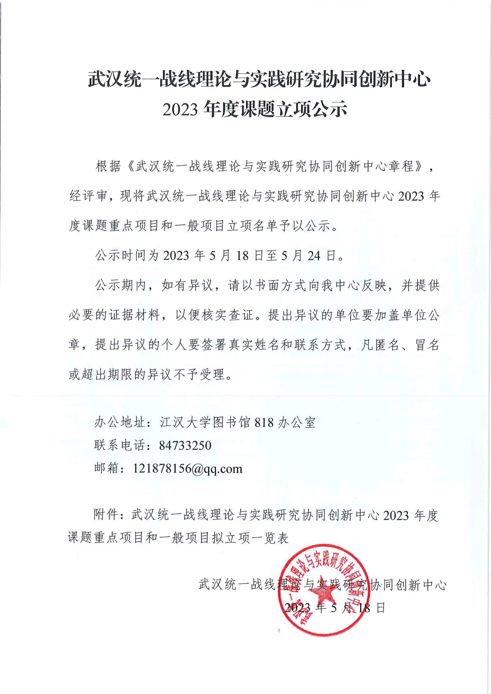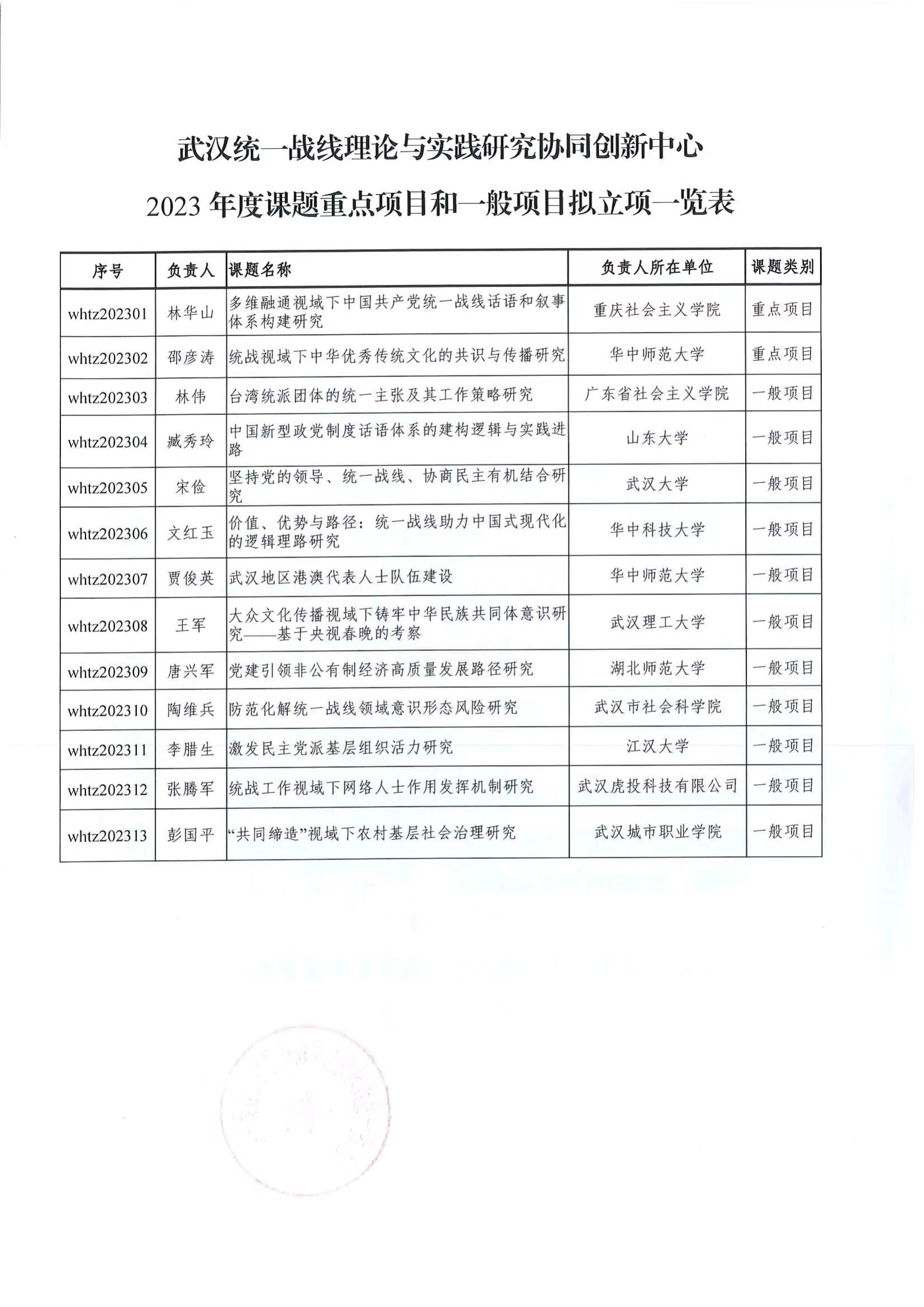 武汉统一战线理论与实践研究协同创新中心2023年度课题立项公示
