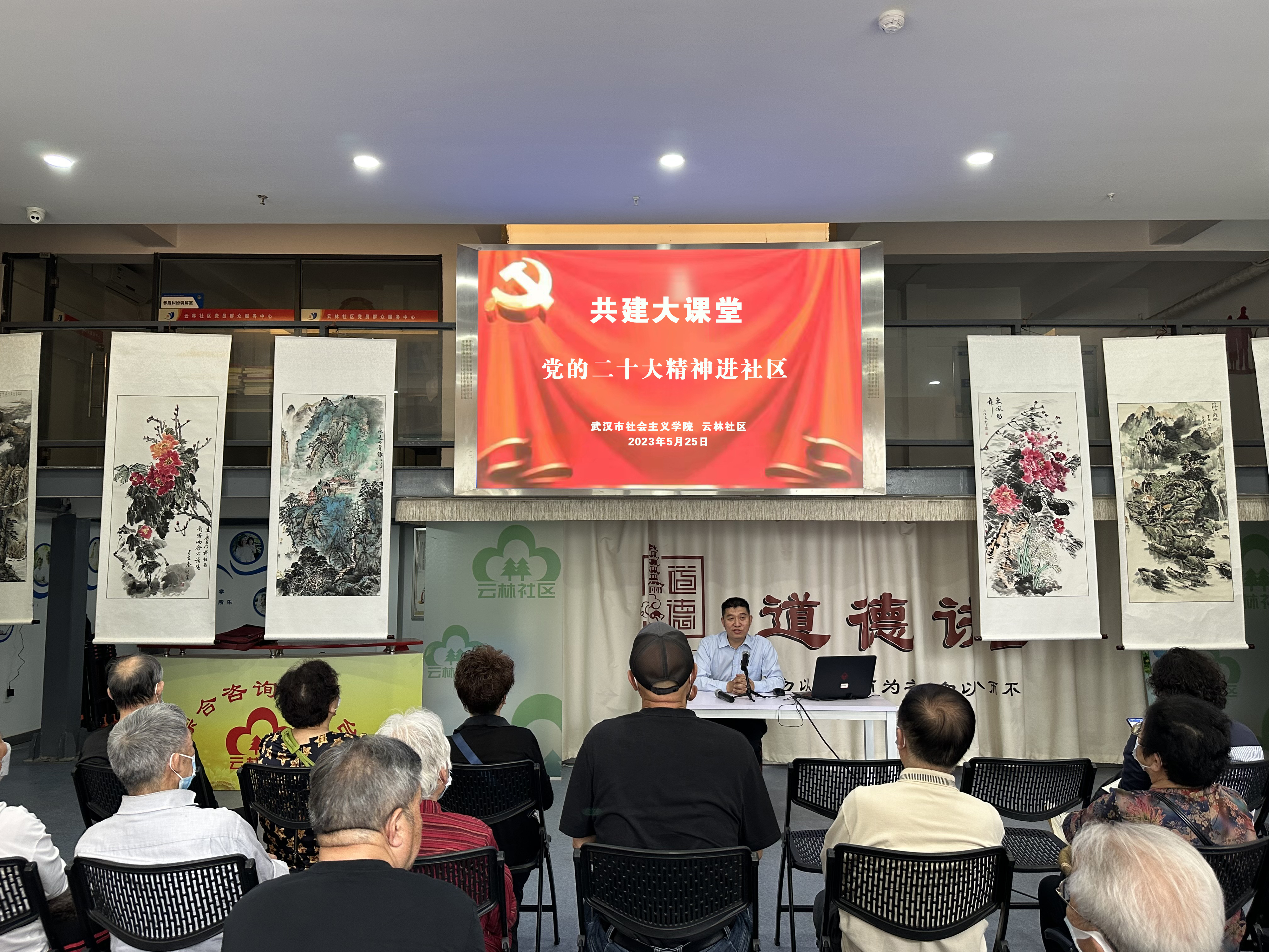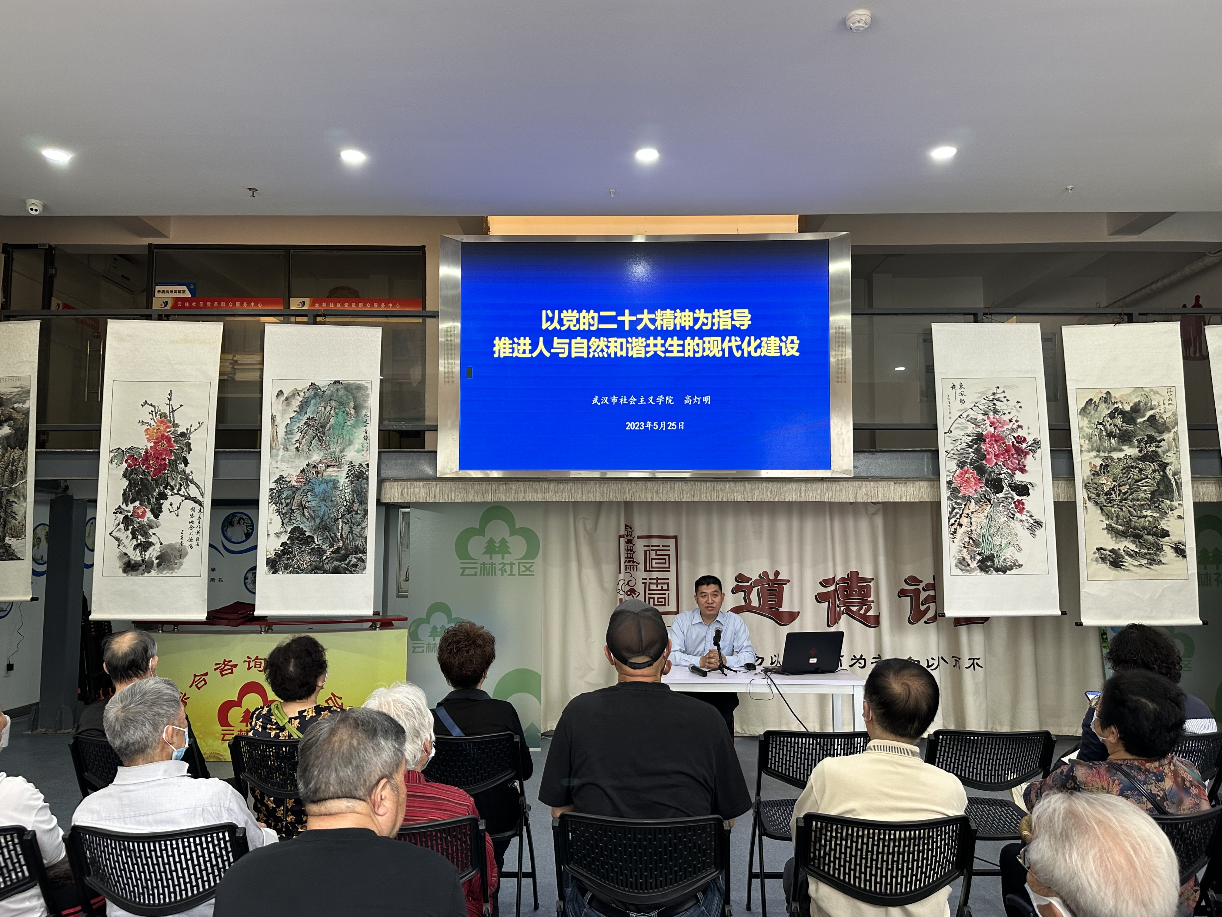 5月25日,武汉市社会主义学院与社区举办共建大课堂,送“党的二十大精神”到台北街道云林社区。此次活动由武汉市社会主义学院综合党支部书记、机关党委高灯明同志以“以党的二十大精神为指导 推进人与自然和谐共生的现代化建设”为题,为社区党员干部分享了学习贯彻党的二十大精神学习心得。云林社区“两委”班子成员、社区党员代表、网格员、业委会、自管组、物业公司员工近30人参加活动。