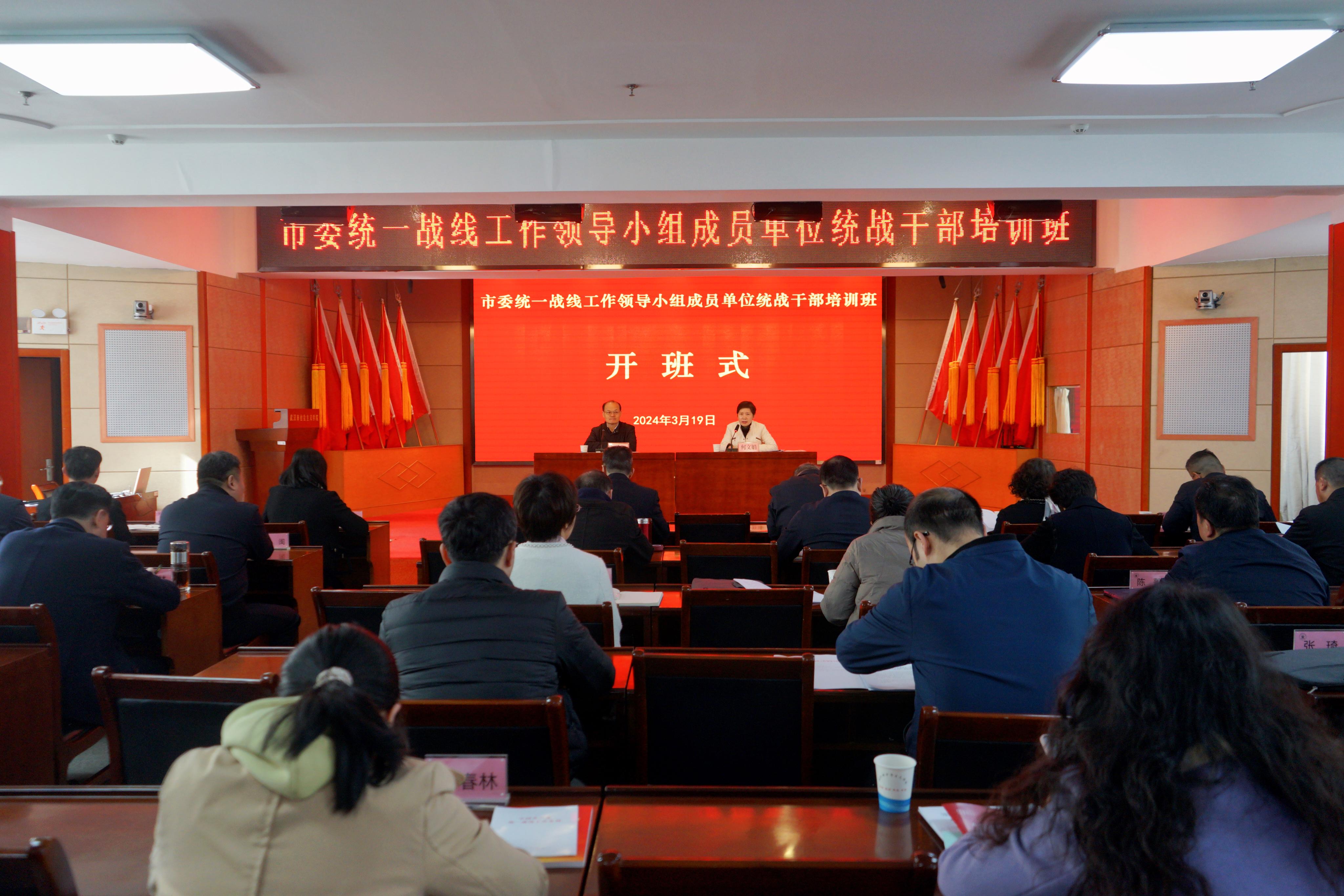 为深入学习贯彻习近平总书记关于做好新时代党的统一战线工作的重要思想和市委统一战线工作领导小组会议精神,提高领导小组工作效能,巩固发展大统战工作格局,3月19日—20日,市委统一战线工作领导小组成员单位统战干部培训班在市社院举办。市社会主义学院一级巡视员杨学文、市委统战部副部长何文娟出席开班式并讲话。市委统一战线工作领导小组成员单位分管领导和联络员、各区(开发区、功能区)党委(工委)统一战线工作领导小组办公室负责人共67人参加培训。