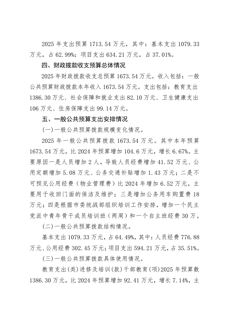 武汉市社会主义学院2025年部门预算