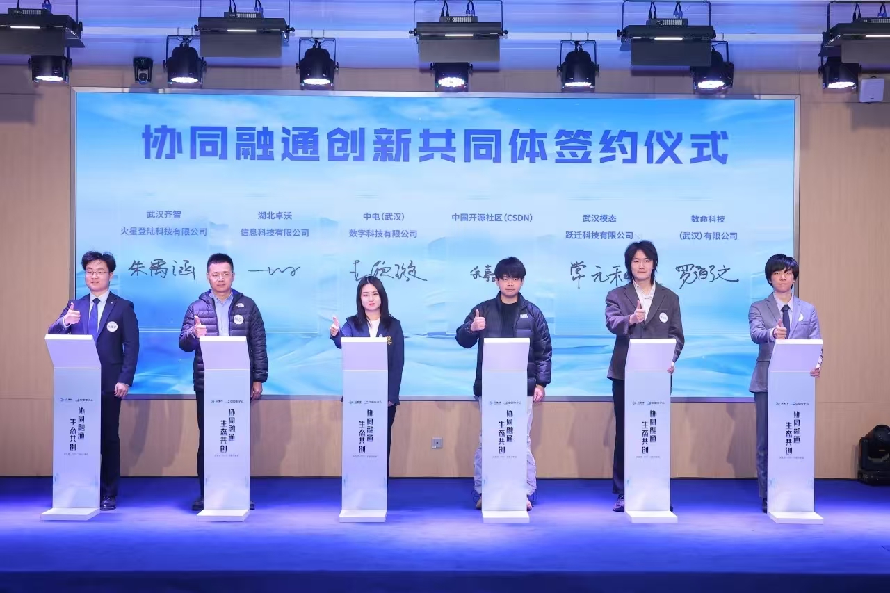 活动现场,中电(武汉)数科和元生代学员企业达成进一步加强联系协作的意向,并发起成立协同融通创新共同体。6家企业代表现场签约,未来将在协作中实现更大突破,为武汉科技创新注入新动能。