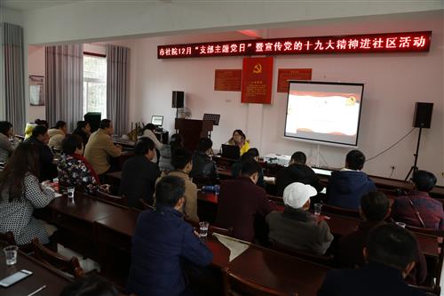 12月1日,武汉市社会主义学院深入“双万双联”结对点——江夏区纸坊街育才社区,开展12月份“支部主题党日”暨宣讲党的十九大精神入企业入社区活动,市社院干部职工、育才社区工作人员、社区直管党员代表,以及部分小微企业党员代表等近40人参加了活动。
