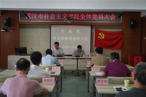 2018年7月20日,武汉市社会主义学院召开全体党员大会,进行院党支部换届选举工作,选举产生了新一届中共武汉市社会主义学院支部委员会,共25名党员参加会议。